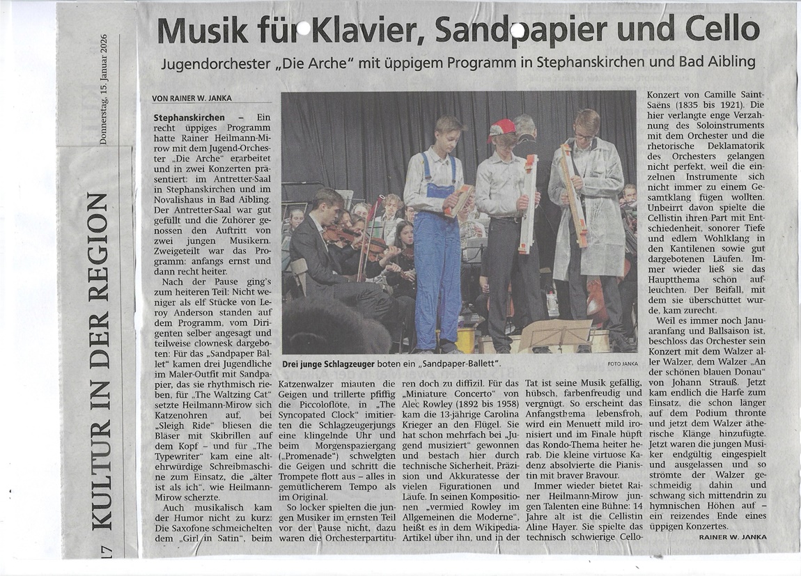 Stephanskirchen - Programmatisch greift das Orchester DIE ARCHE ja immer schon nach den Sternen, das heißt: Der Orchestergründer und -leiter Rainer Heilmann-Mirow wählt auch oft die schwierigsten Orchesterwerke, um die meist jugendlichen Musiker und Musikerinnen an diese Werke heranzuführen.